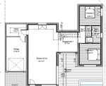 Cette réalisation est décomposée en deux volumes totalement distincts: Au rez de chaussé le volume définie par la pièce de vie tient une place prépondérante. Le dégagement central, permet de cloisonner distinctement les chambres du rez de chaussé du reste de l’habitation. A l’étage nous retrouvons une suite parentale totalement isolée comprenant dressing et salle d’eau. Toujours pratique le garage est accessible directement depuis la maison au travers du cellier qui lui même est accessible depuis l’espace cuisine.