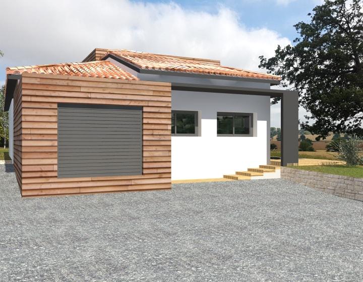 » En plus d’apporter une esthétique contemporaine, les casquettes présentes tout autour de la maison, sont aussi une protection notamment contre la pluie ou le soleil. Le mélange bardage bois et enduit traditionnel apporte une touche originale à cette habitation ! «Objectif Architectural